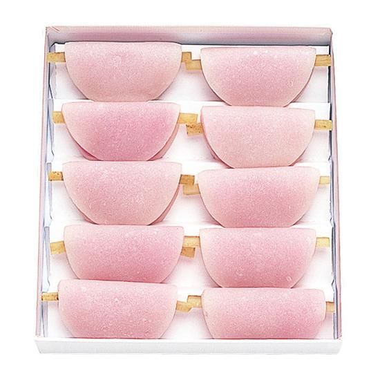 中の紅色がほんのりと映えるように白い餅で包み、蜜漬けのごぼう1本と白味噌餡を優しくあしらいました。